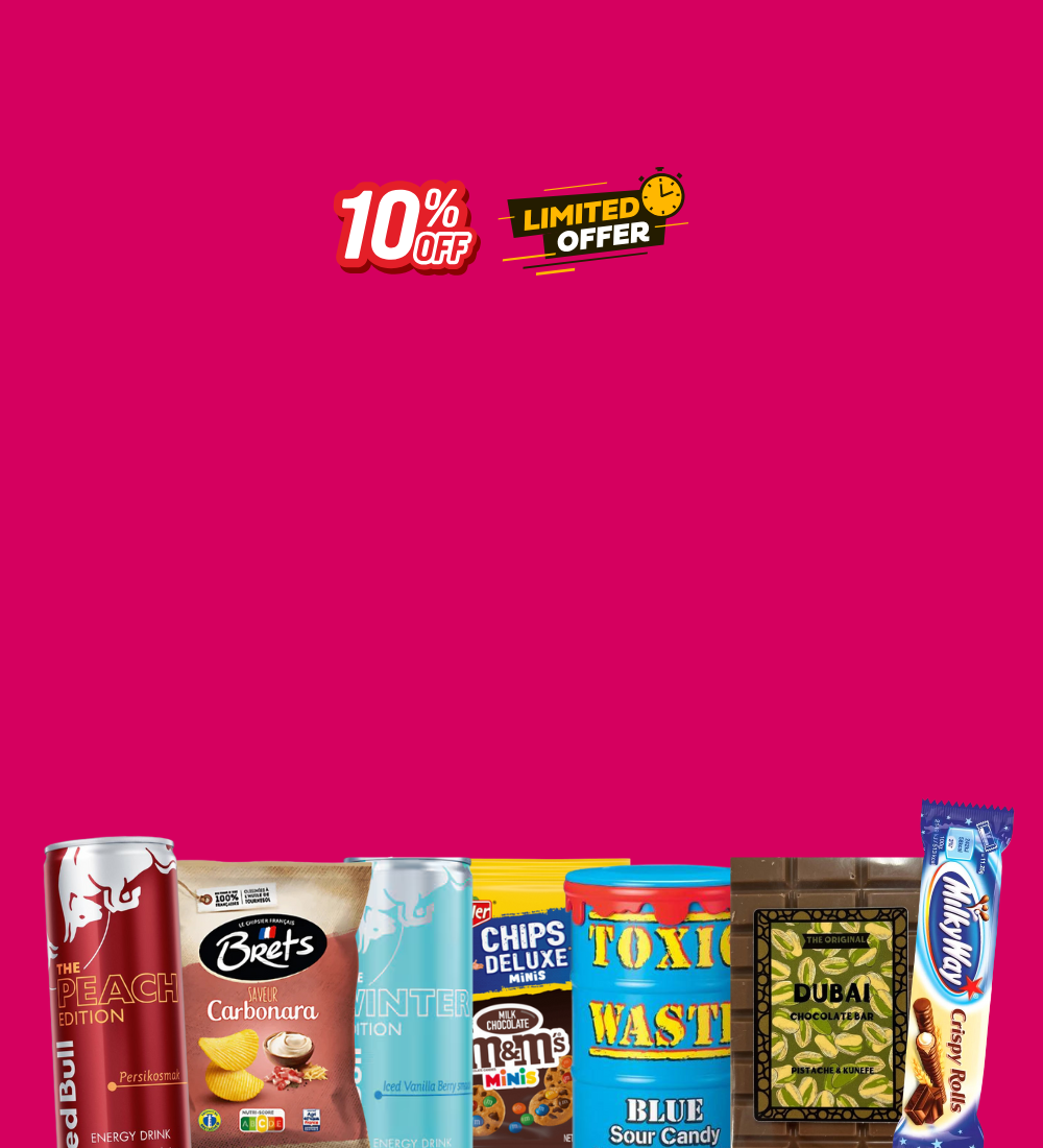 Unsere Herzen schlagen höher für die coolsten Süßigkeiten und Schokolade! Wir durchforsten die Welt für Sie auf der Suche nach den leckersten und seltensten Chips, Süßigkeiten oder Schokolade! Suchen Sie Halal-Süßigkeiten? Flamin Hot Chips oder ein Geschenk für Ihren besten Freund? Entdecken Sie die Wunder von Candyspot.nl! Bestellungen über 100€ werden kostenlos geliefert.