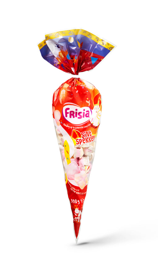 Blaas je Sinterklaasavontuur nieuw leven in met de overheerlijke Frisia Sintspekken! Deze zacht, fluffy spekkies zijn als kleine wolkjes van zoet geluk die je smaakpapillen laten dansen van plezier. Elke zak van 300 gram zit boordevol vreugde en biedt genoeg lekkernijen om te delen of helemaal zelf van te genieten.