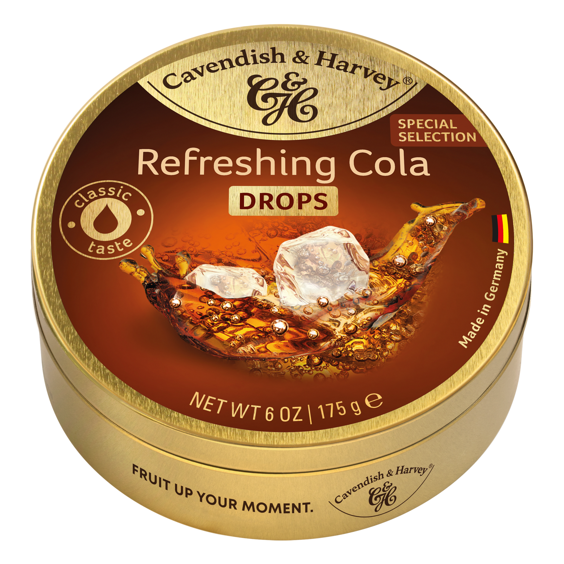 Frische Cola-Bonbons – durstlöschend und erfrischend! Dieser Klassiker ist mit Puderzucker bestäubt, damit er nicht klebt. Versiegelt in einer hochwertigen Golddose.