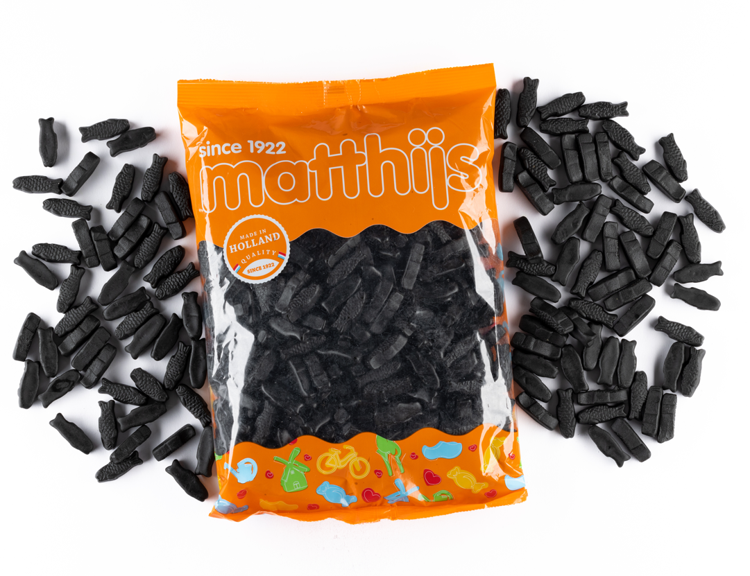 Matthijs's festes und salziges Lakritz in Fischform, mit einem Beutelinhalt von 1 Kilo