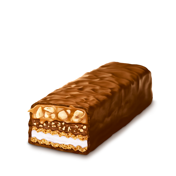 Ein leichter Schokoriegel von Knoppers, hergestellt aus mehreren Schokoladenschichten. Der erste Riegel von Knoppers.
