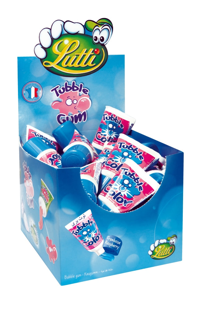 35 Gramm Lutti Tubblegum. Dieses Tubblegum hat einen köstlichen Himbeergeschmack und hinterlässt eine gebräunte Zunge.